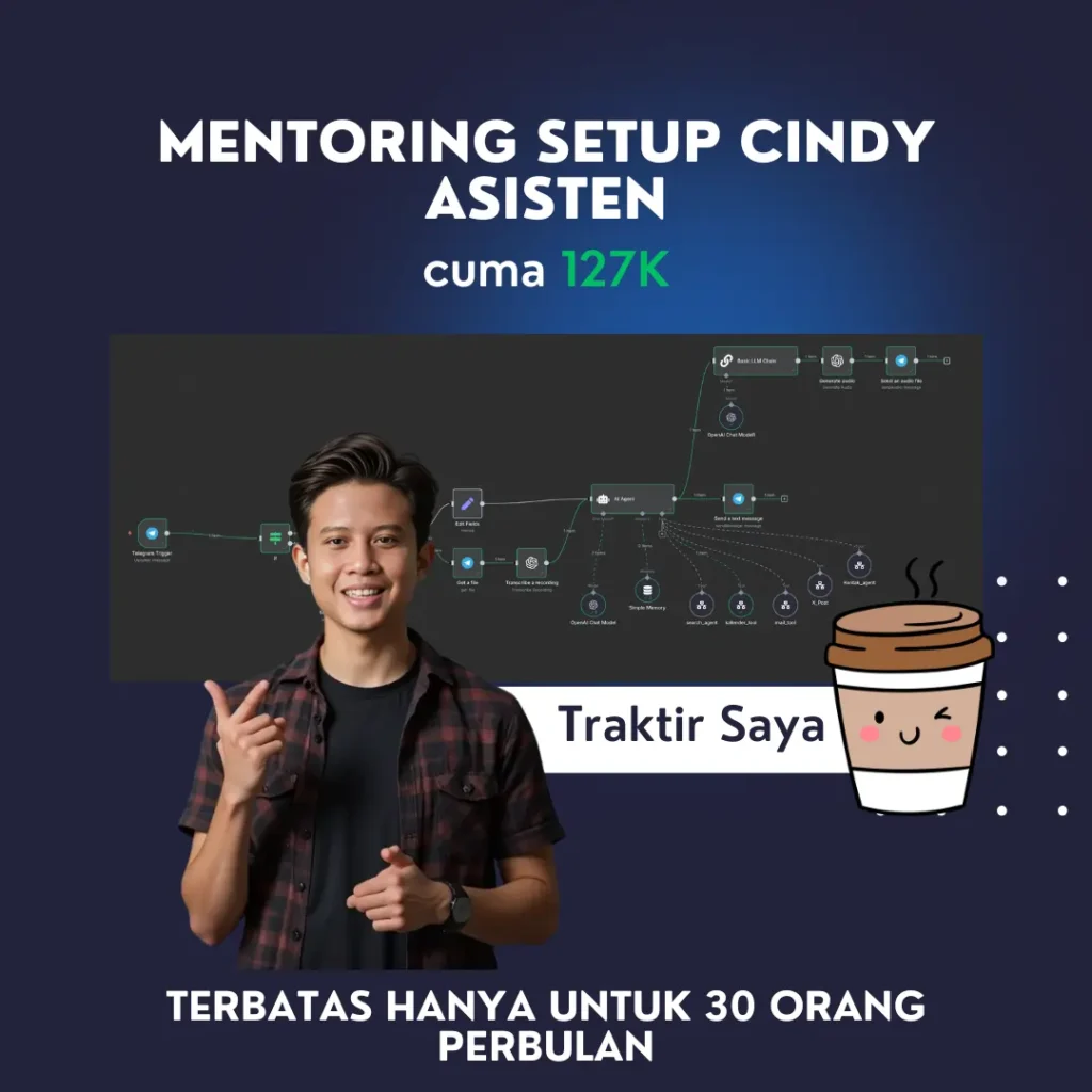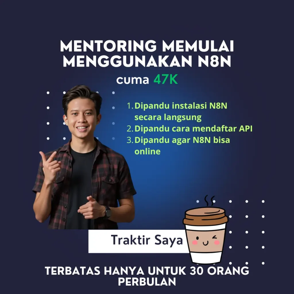 Catatan penting : Pastikan Anda sudah install N8N dan memiliki telegram , akun google console , jika belum saya sarankan Anda mengikuti mentoring instalasi N8N dulu.